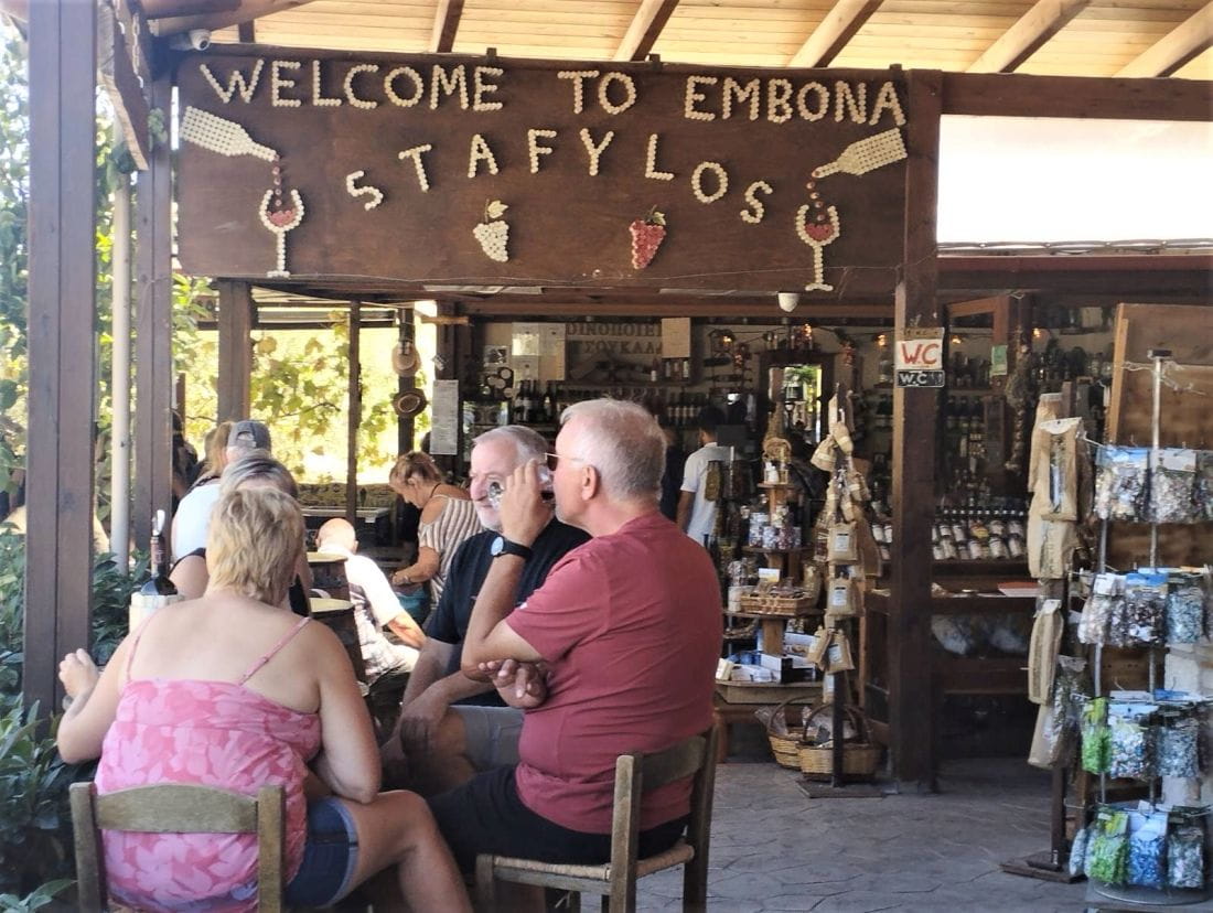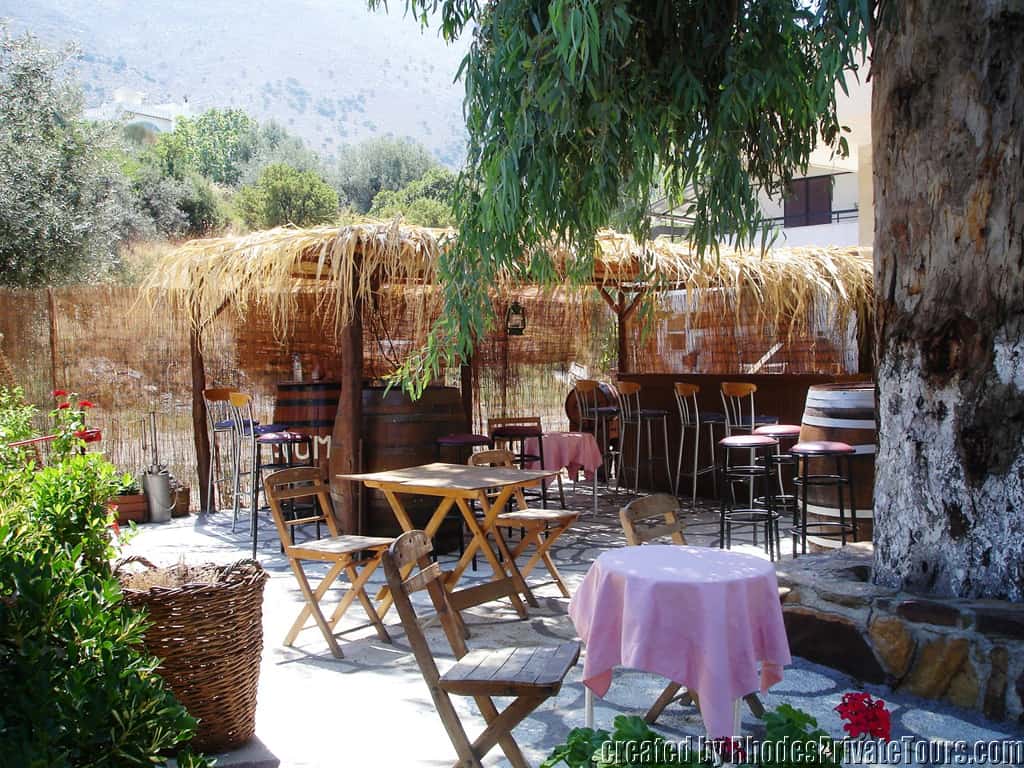 Once we arrive at Embona village we visit the Cava Stafylos, then you can taste some of the stylish original wines and liqueurs made by Logothetis family, Giannis and Andonis (Father and Son). Their winery is only five years old, but the family’s experience with the wines began about three generations ago and they still make their own wines to these days. Their plan is to produce high quality wines in affordable prices. You can also taste Olive Oil, Honey and deferent Spices. (Entrance Fee: 5 Euros per person)